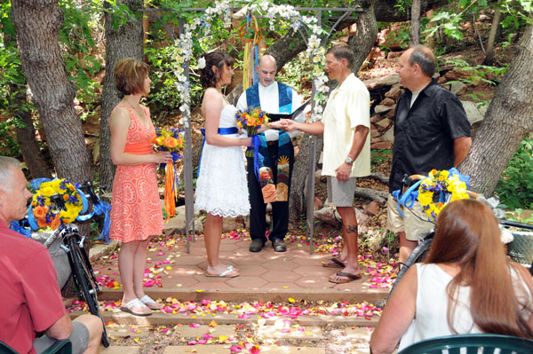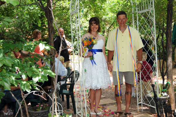 ![]() Janay & Shawne Married June 25, 2011 Janay & Shawne pedaled from California to Colorado to be married in a Bicycle-themed wedding! Their bicycles served as bridesmaid and groomsman during the ceremony, and they shared their first kiss as man and wife accompanied by the music of Queen's "Bicycle Race!" See if you can spot all the other bicycle-related wedding decorations! |